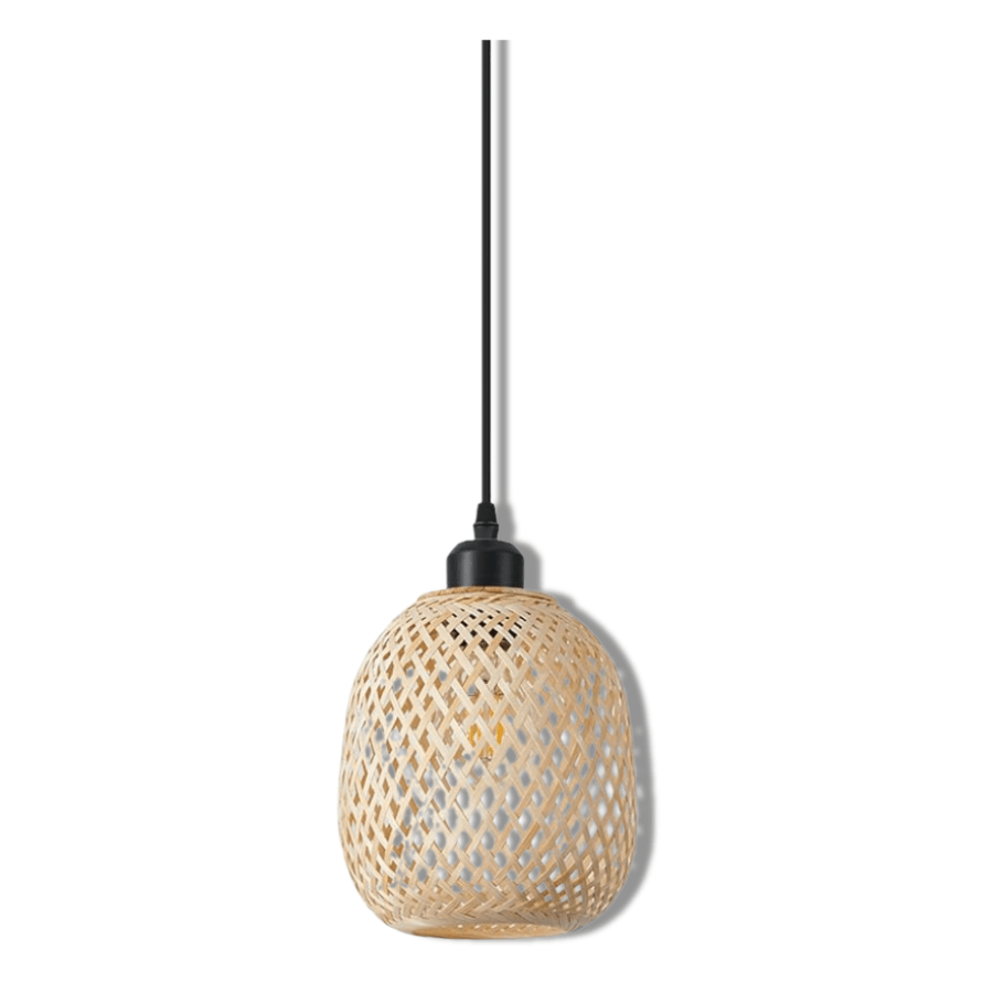 Com sua estrutura artesanal em bambu e palha, este pendente cria uma atmosfera acolhedora, perfeita para quem busca um toque natural e elegante.