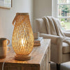 Esta luminária de mesa traz a estética orgânica da palha bambu em um formato de lanterna contemporânea. Com sua estrutura de trama aberta, ela não apenas ilumina, mas decora o ambiente através de um jogo envolvente de luz e sombra. Perfeita para mesas de cabeceira, aparadores ou cantos de leitura que pedem um toque de calor e textura natural.